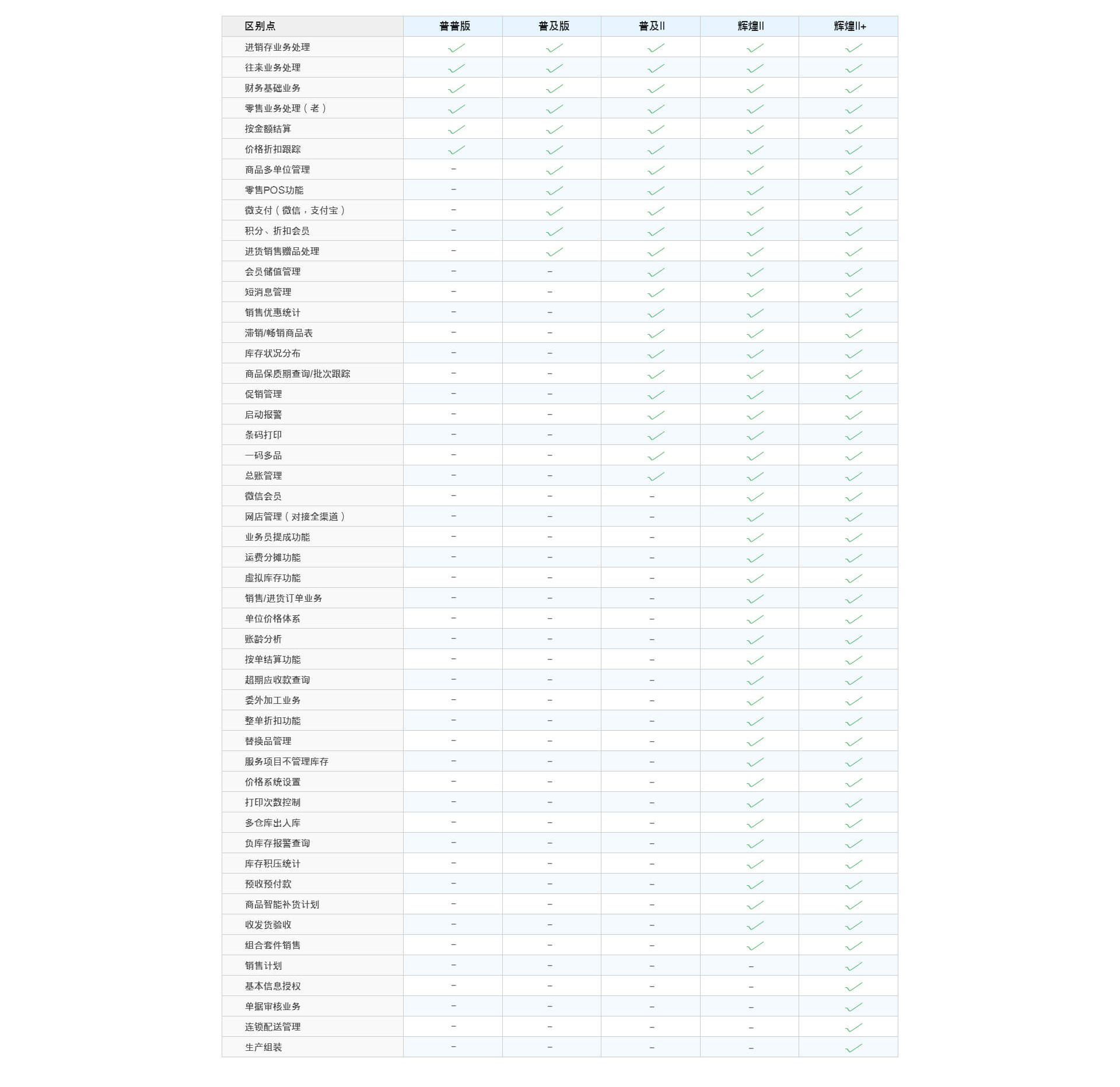 功能对比表